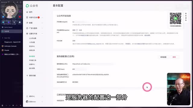 然后这里面显示的i p地址,就是你需要把他们都加入到微信的i p白名单里面去。那这样的mac跟微信a p i的连接呢就建立好了。很简单。那接下来呢我们再看第二步服务器的配置。好,接下来呢是服务器的配置这一部分。那这边呢我的服务器是已经在启用的状态,我们可以看一下修改配置。在大多数情况下呢,你是需要微信的服务器和你的服务器进行通讯的。所以呢你需要进行这一步的服务器的配置。