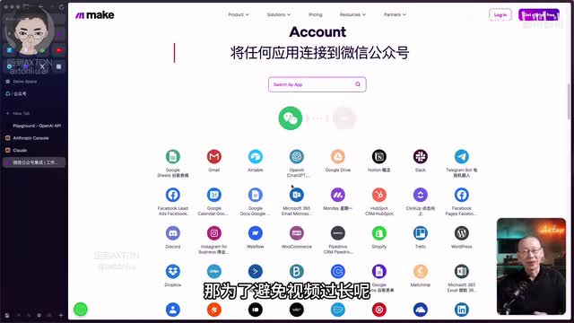 由于mac它本身呢可以跟一千多种app来进行整合呀。因此学会了刚才的那一部分呢,你就可以把这下面的这一堆应用去跟微信公众号进行连接,完成你所希望的一些工作流场景了。那为了避免视频过长呢,其中的很多细节部分呢,稍后我会更新到我的a i自动化课程当中去。如果你对此感兴趣呢,请通过描述栏当中的链接加入a i精英学院。好,今天的分享就到这里。我是exxon,请帮我点赞、评论,订阅我的频道,并且打开小铃铛,咱们下期再见。