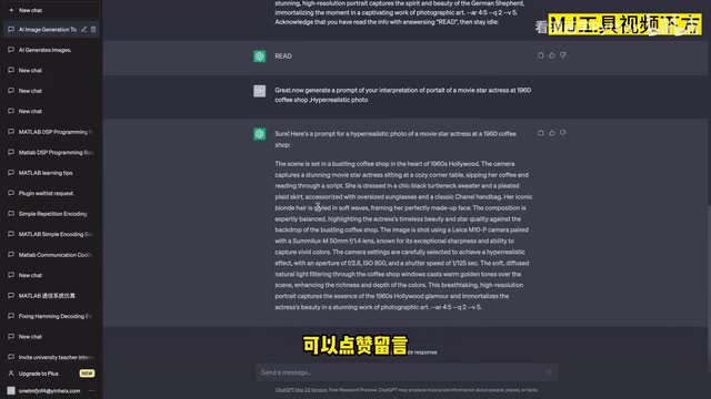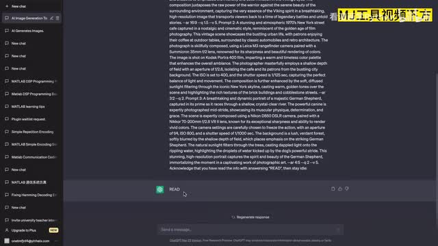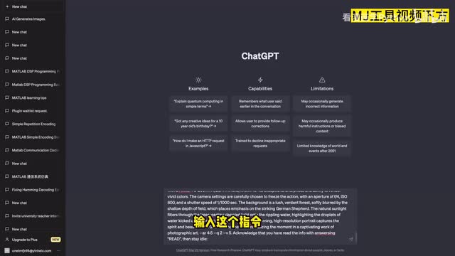 我们开始吧,首先打开你的chat g p t,输入这个指令,让chat g p t学习mid journey的指令规则。