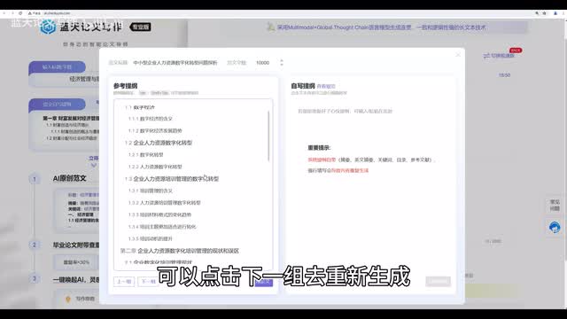 如果第一份提纲我们觉得不满意的话,可以点击下一组去重新生成。我们也可以自己去编辑提刚刚用我们自己的提纲来生成论文。