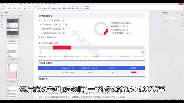 然后我又去知网去测了一下我这篇论文的a i近视率。测完之后它的a i近视率就只有百分之一十六,还是比较低的。