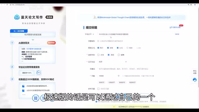 这个工具分为极速版跟专业版。极速版的话是可以通过自己的一个开题报告去生成我们的论文。