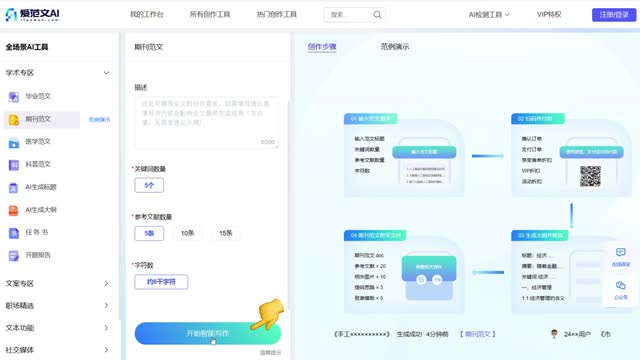如何快速生成一篇期刊?论文范文打开爱范文a i网站,点击学术创作。