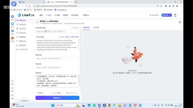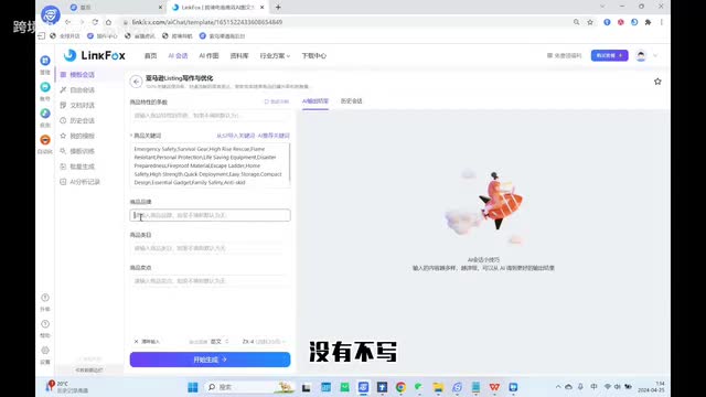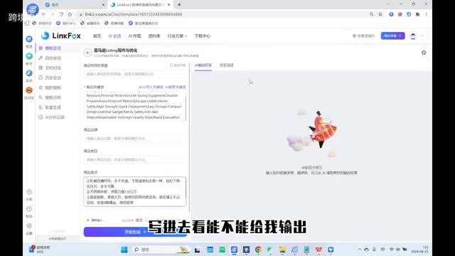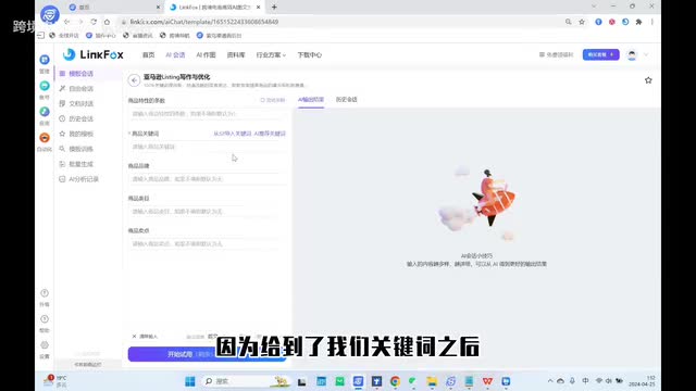 那我先去试一下listen的写作吧。因为给到了我们关键词之后,我们核心还是去写,请输入商品特性。