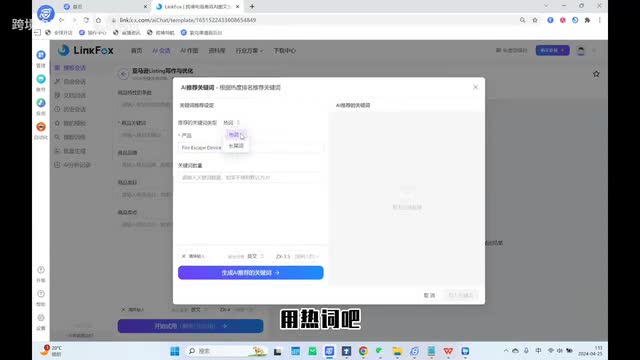 就是我们写几条默认五啊,这个不用不用不用展示了。然后商品关键词a i推荐关键词是什么?这就是我们刚刚单独去用的那个产品,应该是啊热词ok。