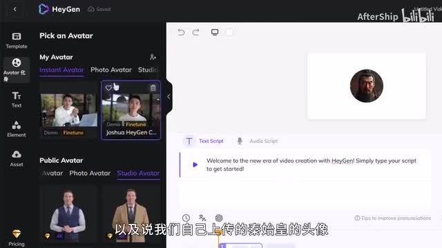 我们来看一下它的一个效果,这是他们的c o克隆自己的一个效果。hey, welcome to haye. this, this is john hay and c. e o. this is my instant bata. 可以看到效果是非常自然的。然后这个功能呢只需要你上传自己的两分钟的一个声音和画面,就可以去克隆一个自己。第二个功能呢是照片数字人的功能。这一个功能的话只需要你上传一张照片,这张照片可以是别人的照片,也可以是ai生成的一个虚拟人的照片。