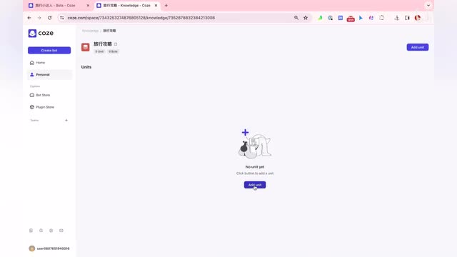 比如说我们还是问他那个关于五一期间的大理天气的情况。嗯,可以看到罐头给我们的回复和我们调试的效果差不多,也就是有成功的使用了插件。到这里,一个简单的boat就搭建完成了。下面我们就回到刚才的一个配置页面上,看一下我们还可以给word添加哪些功能。比如说这个knowledge,顾名思义它是知识库的意思。dot可以通过去知识库里面读取内容来回答用户的问题。