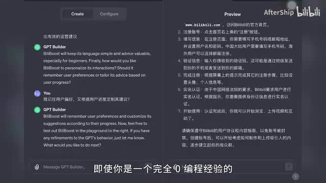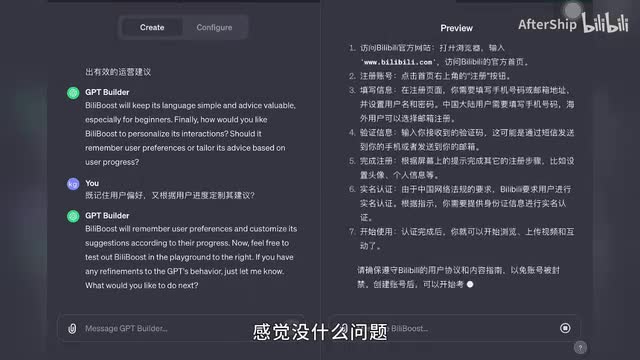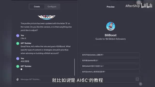 好,他让我们来完善这个a p p的一个作用和目标。问我们在建立这个账户的时候,应该优先考虑哪些内容?呃,我觉得现在的a i g c很火嘛,就是用a i来做视频很火。所以我就给他一个思路吧,就比如说是a i g c的教程,加入一些怎么用a i g c去帮大家做视频的一些问题和引导,给他一个关键词,看他能不能理解o k他现在告诉我们,他会专注a i g c这个板块,然后指导用户用a i g c去创建一些内容。