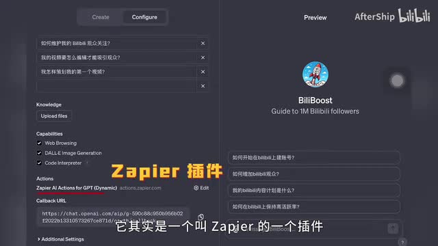 ok它已经增加了一些新的问题了,呃,这个a p p就是已经制作完成了。好,接下来我们进入教程的后半部分,就是这个configure就是配置。它里面是可以调整挺多设置的,像名字简介、描述以及和用户一开始交互的这些问题,都可以在这里做一些调整。