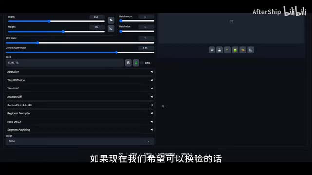 我们可以先把它的人脸部分给涂出来,生成一个模板。好,生成完一个模板之后呢,我们就可以准备开始去换脸了。这里的采样模式由于是写实风格的,我们还是会采用这一个采样器。同时生成的照片更也是需要跟刚刚一样,是九百乘一千二的。