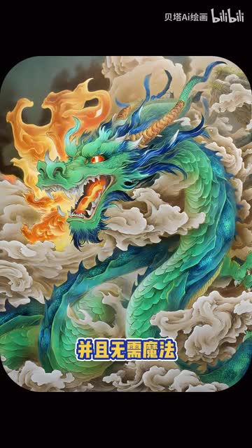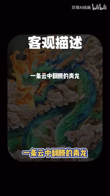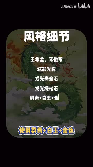生成以后就可以得到这样一幅插图,接着我们继续优化风格细节,使用王希孟、宋徽宗的绘画风格,炫彩光影发光青金石发光绿松石使用群青加白玉加金色作为主色调,并且采用大广角和全景点击生成,就可以得到我们需要的国风青龙插图了,而且拥有真假难辨的超逼真手绘。