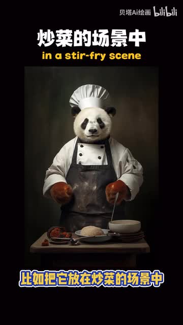 它作为一名厨师,我们只需要采用固定的句式来表达a作为b其中的a指代画面中现有的对象,也就是这只熊猫。