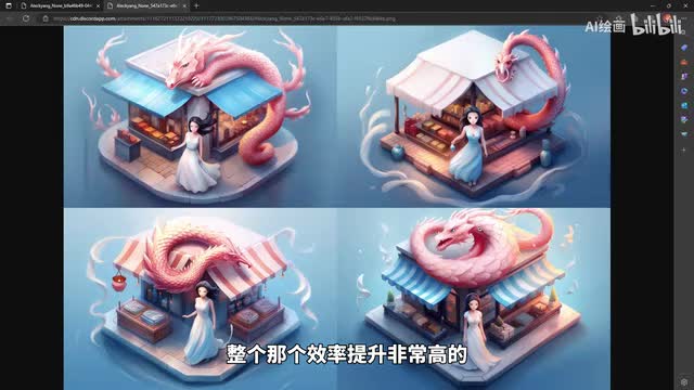 商店我们一个呃商店的老板娘在门口在招呼客人对吧?然后我们的龙变成我们的一个店的宠物一样,然后再盘踞在我们的一个店的店的楼楼顶上进行一个呃守护对吧。那我们的商店呢它的风格也变成了这种古风的那种效果,不像不再是那种现代化的的效果。所以说我们在可以将这些。通过这种呃两个不相干的图片和我们的进行一个融合呢,能得到很多意想不到的一些效果,让我们的那个发发挥空间非常大啊,我们的那a i绘画呢可以做到很多我们呃可以做到很多,可以让我们。