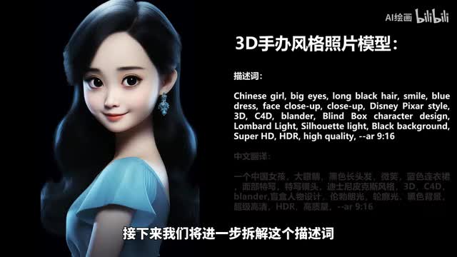 接下来我们进行风格的设定,我们的风格呢迪士尼皮克斯风格。我们先写上迪士尼皮克斯风格,还有呢就是需要有一个三d的风格,那我们就写上三d这个关键词。我们同时呢再加上一个c s d,还有我们的blender这个关键词。再然后呢我们加上一个手办风格的一些关键词,比如说盲盒人物设计。