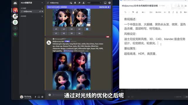 通过我们的不断对关键词进行优化,我们已经把这个模型慢慢的训练出来了。这个时候我们只需要把我们的真实照片拖进我们的输入框,回车发送给服务器。然后将链接复制下来,斜杠选择第一个粘贴到pro pt。然后点空格,再复制粘贴我们训练好的模型的描述词,稍等片刻。