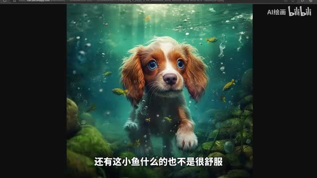 一只在海底世界的小狗。ok那么我翻译之后呢,复制之后,我们到这里粘贴。三天之后呢,我们直接回车。我们去稍等片刻。