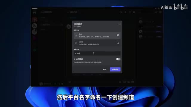 那比如说我现在给第一个啊一个新的频道,好吧。这里呢就选择文字频道就可以了。然后频道名称命名一下,我创建频道。好,那我们可以看一下左这里我们的主要操作界面。