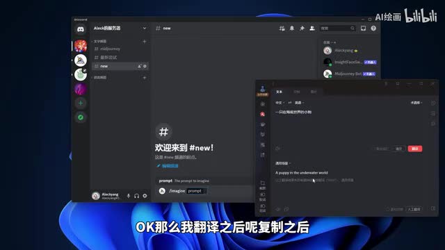 我们这个词呢,我们描述词呢需要用英文去呃输入。我们这时候我们去找一个翻译软件,去把我们描述词翻译。我们去想,比如说我现在想要生成一张在海底世界的一只小狗,那么呢我们可以就是说用英文软件去呃翻译软件去翻译一下。比如说我是。