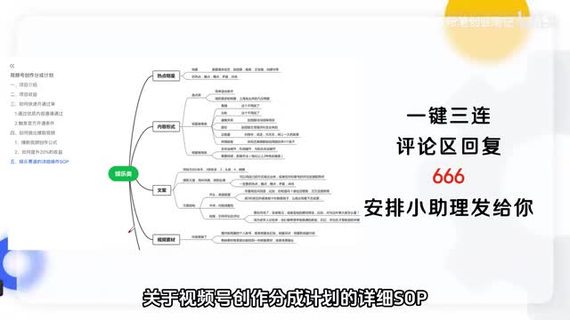 这个时候呢只要有用户啊去看到这个广告或者是点击这个广告,咱们啊都可以拿到收益。那当然了,光这样说呢可能不是很清楚,所以这里啊我准备了一份关于视频号创作分成计划的详细s o p。我们团队呢很多小伙伴就靠着这个s o p啊去制作了很多千万播放的一个爆款。那需要这个资料的伙伴呢一键三连,评论区啊回复六六六,我会安排小助理私发给你。