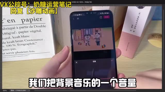 我们可以选择音频,这里有个音乐库,我们选择一个搞笑一点的背景音乐就可以了。好,然后我们选择使用这个音乐,你给它点击使用。最后呢我们可以调节它的音量,我们把背景音乐的一个音量给它调小一点,我们点击对勾之后呢,我们点击合成视频。好,我们合成完视频之后,我们点击本地保存到本地之后呢,然后我们再打开剪映。