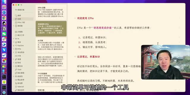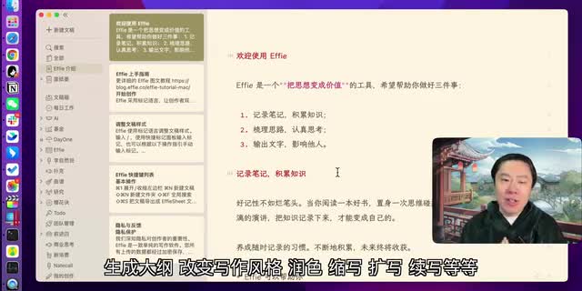 而且呢艾克还为大纲和思维导图做了特别的优化,他就尤其适合写那些逻辑很严密的文章。比如我今天讲的这个视频,我事先就写好了一个大纲啊,我平时呢在录视频之前也经常会写这样的一个大纲来理清思路。那有些朋友可能会问,这个f和幕布在这方面有什么区别?幕布当然也是一款非常优秀的软件啊,如果你只需要做大纲的话,你当然可以用幕布。那f c呢主打的是写文章嘛,它可以实现文章和大纲的混排。大纲呢在f c这边只是一个辅助文字创作的工具。所以说如果你是为了写一篇文章啊,大纲只是你整理思路的工具的话,那f c就是你必然的选择啊。呃我知道现在还有很多非常强大的软件,比如说notion啊、opc dian, 但那些软件呢嗯在我看来都是一个重大的缺点,就是呃需要学习啊。如果你有很多很复杂的需求,那他们当然可能是更好的选择啊。但如果你就是想简简单单的写写东西,那其实没有必要搞得这么复杂。