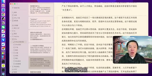 同时呢我还可以让他帮我做一个续写,就是你真正的想问就问,你无需任何的等待你需要等待呢,只是a i处理好之后,他会把结果给你看嘛。那甚至你在等待的时候,你断网,退退出a那个退出ii切换设备都没有问题。它不像很多a i软件那样,你必须联网才能用,不能离开这个这个界面。那现在多数a i的做法呢是他给你的这个回答会一个字一个字的出来,这样会显得a i的反应速度比较快。它其实主要是不让用户等等的时候感觉很无聊嘛。这个但ipad理念呢是不想让a i干扰用户的思考和创作。在交互上呢i f i的答案会干净粒度的就是一次性全出来,这样可能会显得等待的时间更长一点,但其实等待的时间是一样的,而且呃我觉得a i技术也在不断的进步嘛,那后面这个速度肯定会越来越快。呃,大家看到a i回答这个框啊,它如果离光标比较远,那a i给的答复就会收起来嘛。那这样的话,这个在你收到a的答复之后,这个编辑区就不会突然弹出来一块内容来导致它上下跳动什么的。