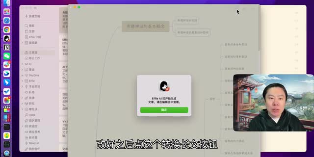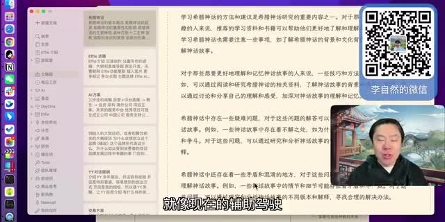 啊在你需要写一些说明性文章、套路性文章,或者说对质量要求不太高的文章的时候可以用。呃,这个功能稍微有些慢啊,因为a i实际在后台服务器上要运行很多条指令来做这个文章。那这时候你去还是你你可以去做别的,对吧?你切换文章,甚至关掉啊a都没有问题。那我们等这个结果出来啊,你看这个在我对希腊神话一无所知的情况下,毫不费力就写了一篇几千字的文章,对吧?但这是为了演示,就是我其实并不鼓励大家这样来使用f i,所以我还是认为创作者才是创作的灵魂。a i只是辅助,就像现在的辅助驾驶,它可以帮助驾驶员在开车的时候,开高速的时候省很多的利息,但并不能取代驾驶员的地位。即便就起码今天是这样啊,所以当下f i的理念呢就是创作者才是真正的核心嘛。a i只是副驾驶的一个角色,我甚至考虑呢做一个甚至在考虑啊做一个功能。就是如果你在创作一篇文章的时候没有使用a i那么在导出的时候呢会有一个选项,可以在导出成图片的时候加一个小的logo,就是上面会写着古法手打非a i生成。那个所以说呢我是鼓励大家使用ai的,但并不鼓励用ai自动的来写啊。