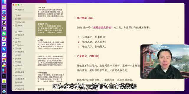 那菲呢有一个重要的理念,就是这个鼓励大家把精力用在创作本身,而不是去学习软件。啊,如果你把大量的时间用在学习软件,和软件搞来搞去,而不是这个用来输出自己的选择,那在我看来都是本末倒置的。当然这个海外呢也有很多专注写字的软件,比如说有了这个bear tempora,呃,菲菲作为我们中国团队推出的品牌,在产品力上是绝对不输国外的精品的。啊,另外呢艾菲是无需联网也能使用的,用户的数据是储存在设备的本地,这样的用户的数据就非常安全。因为在本地。和在云端其实都各自有一份数据嘛,那本地数据通过云端进行同步和备份。呃,说句最难听的,基本是我的公司倒闭了,那用户的数据也不会丢啊,这不是危言耸听啊,这是因为公司倒闭或者项目关闭,导致大量用户数据丢失的事情。其实在互联网历史上发生过不止一次两次了啊,这个而且存在网络上的文章被删掉,这种事情就发生的更多,对吧?这除了数据更加安全之外呢,f a是可以在完全离线的环境下使用的。平时如果大家平时就在城市里面待着,可能感觉不是很明显。