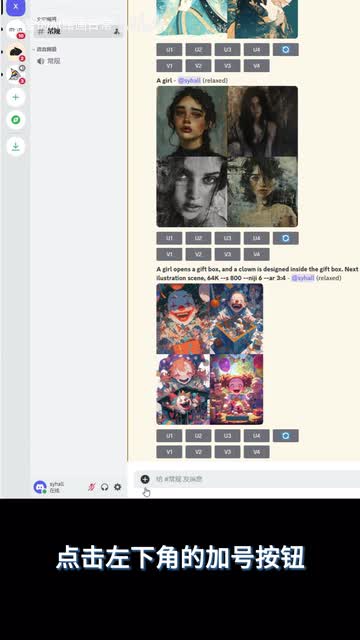 然后我们打开mid journey,点击左下角的加号按钮,选择上传图片,把我们替换好图片上传。