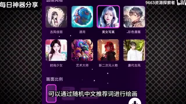 他调用了major i官方接口,可以通过随机中文推荐词进行绘画,也可以自己输入相关中文,选择你想要的风格,生成专属自己的a i图片。