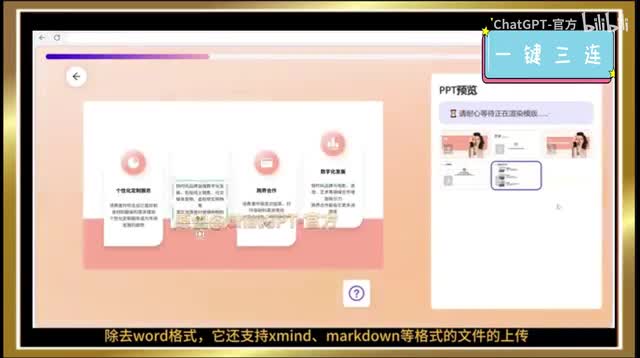 前演示的流程一键生成p p t。除去word格式,它还支持x mind markdown等格式的文件的上传。