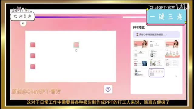 打工人终于可以早点下班了,就是这个a i p p t只需要一分钟就能帮你一键生成各种工作p p t,让你从此告别加班。只需要在这里输入想要制作的p p t主题,它就能自动为你生成p p t大纲,非常的全面细致。