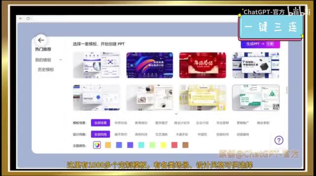 你也可以在此基础上进行微调,然后点击这里选择一个p p t模板。这里有一千多个定制模板,有各类场景设计风格可供选择,而且还在不断更新中,可以满足各种场景需要。