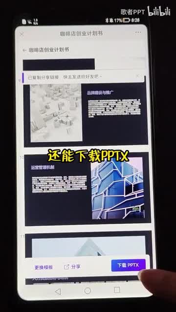 点击分享,可以将p p t分享给微信好友,还能下载p p t x,快来试试吧。