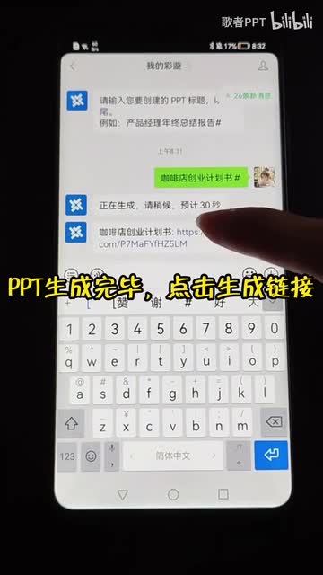 静候三十秒,p p t生成中,p p t生成完毕,点击生成链接。
